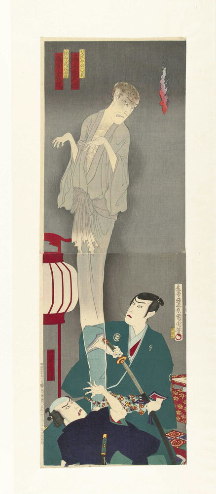 Nakama Gonbee en Kanbara Mikinosuke bij de geest van Sajiro
