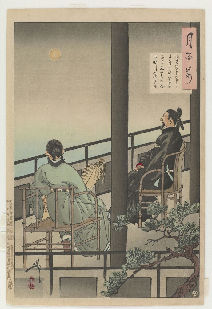 As I look out into the vast expanse/can this be the same moon/that I saw rise in Kasuga behind Mount Mikasa? - Abe no Nakamaro, from the series One Hundred Aspects of the Moon