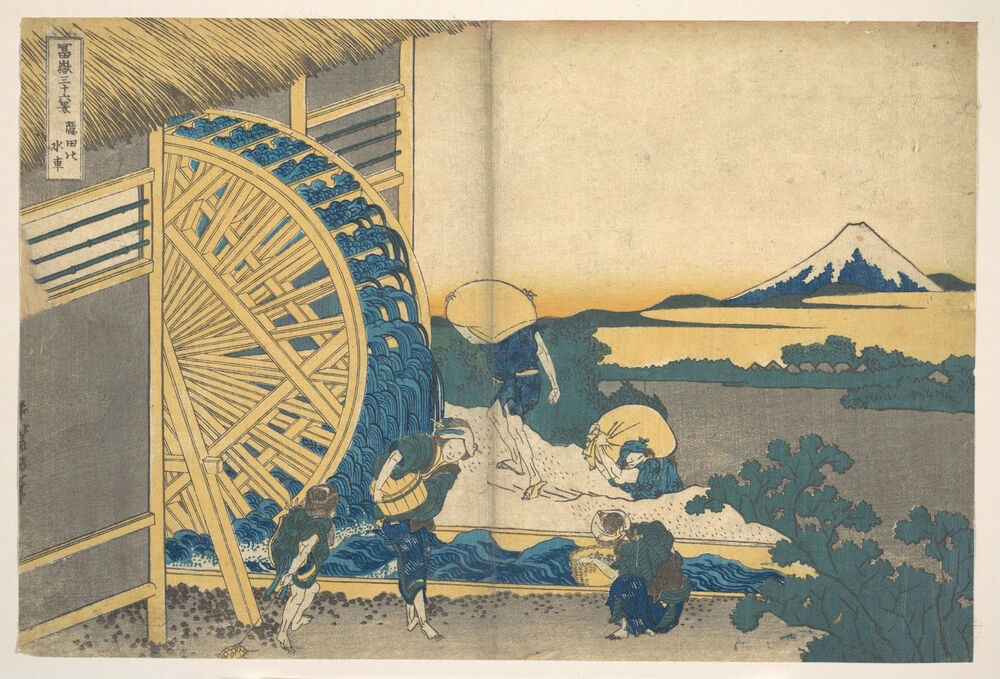 冨嶽三十六景 隠田の水車|The Waterwheel at Onden (Onden no suisha), from the series Thirty-six Views of Mount Fuji (Fugaku sanjūrokkei)