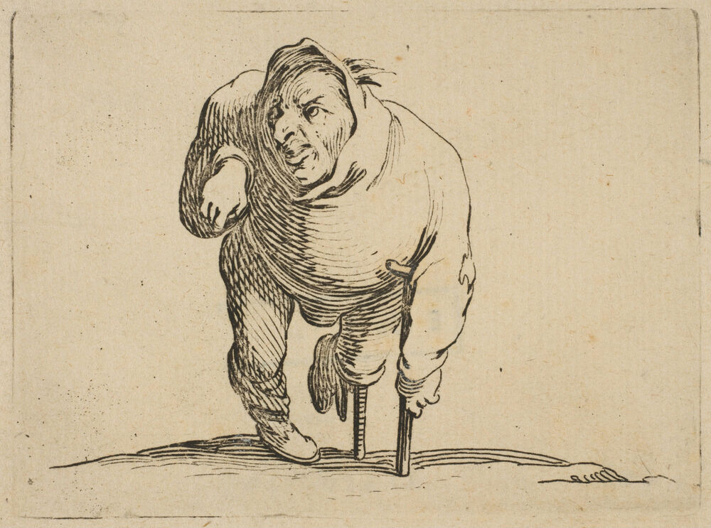 L'Estropié a la Béquille et a La Jambe de Bois (The Cripple with a Crutch and a Wooden Leg), from Varie Figure Gobbi, suite appelée aussi Les Bossus, Les Pygmées, Les Nains Grotesques (Various Hunchbacked Figures, The Hunchbacks, The Pygmes, The Grotesque Dwarfs)