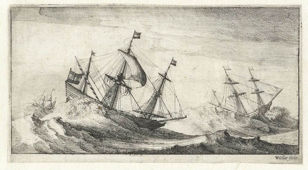 Zeilschepen in een zeestorm