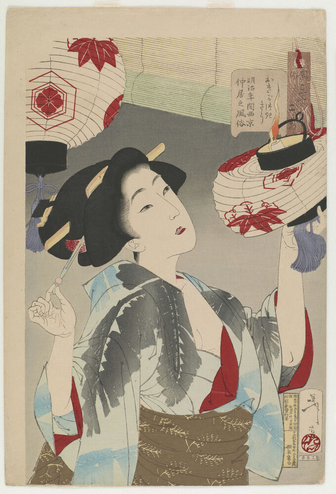 Looking perceptive: the appearance of a Kyoto waitress in the Meiji era, from the series Thirty-two Aspects of Customs and Manners