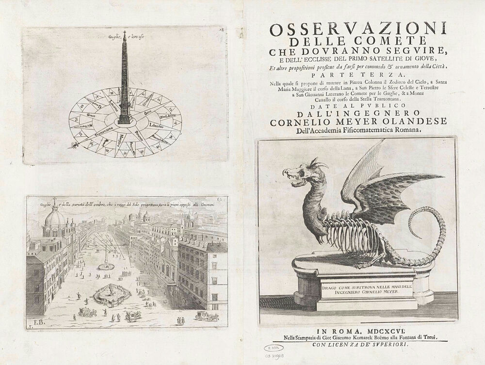 Titelpagina en twee boekillustraties met obelisken