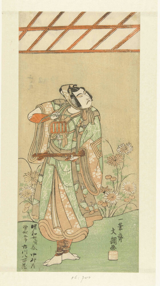 Acteur Ichikawa Yaozo II in de rol van Soga no Goro met vossenval