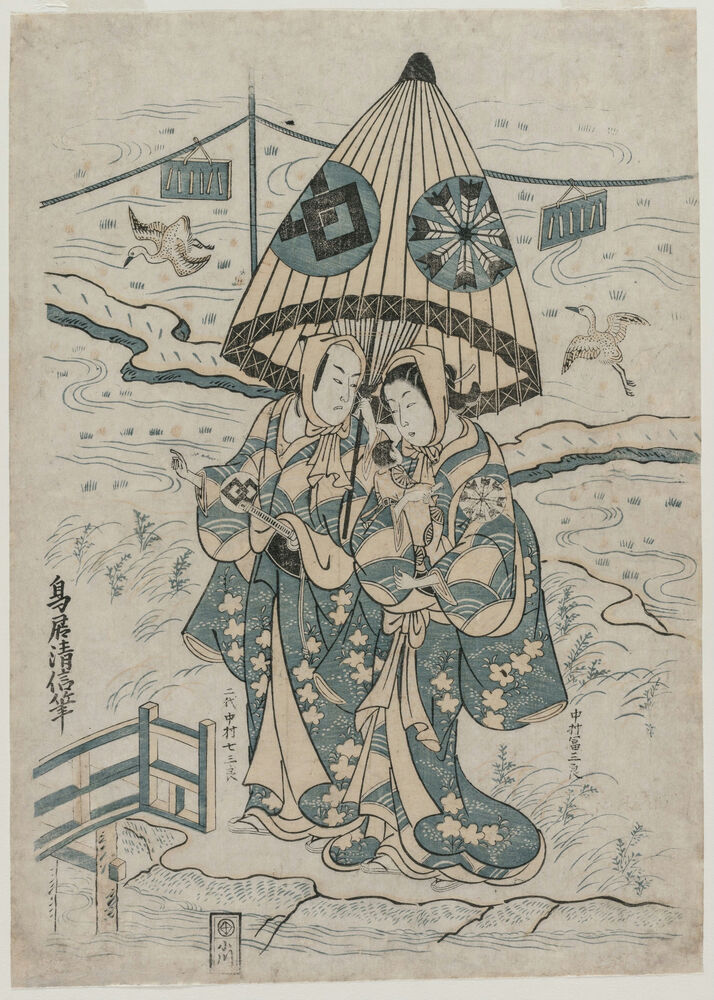 Nakamura Tomijuro and Nakamura Shichisaburo II as the Lovers Agemaki and Sukeroku