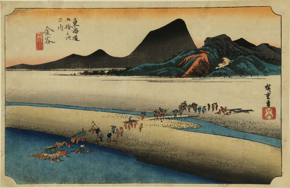 The Totoumi Bank of the Oi River, Kanaya, from the series the Fifty-three Stations of the Tokaido (Hoeido edition)