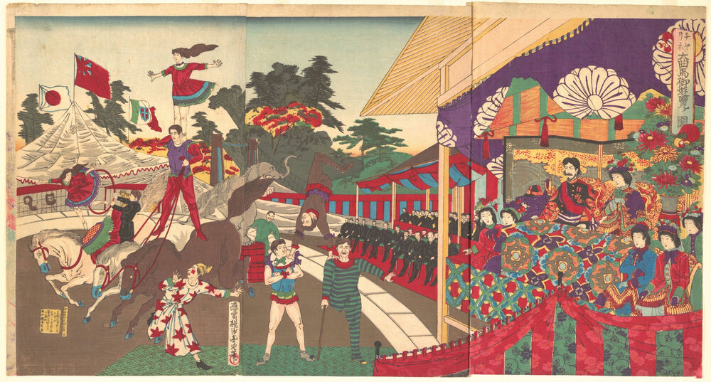 チャリネ大曲馬御遊覧ノ図|Illustration of the Imperial Excursion to see the Charini's Circus (Charine daikyokuba goyūran no zu)