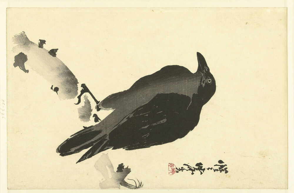 Kraai op een boomstam