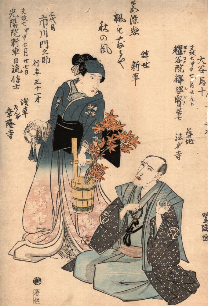 Shini-e, actors Ichikawa Monnosuke III and Otani Baju II