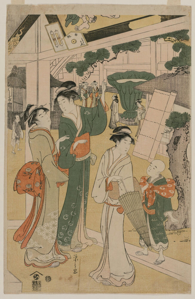 Women Visiting a Tea Stall on the Precincts of a Temple