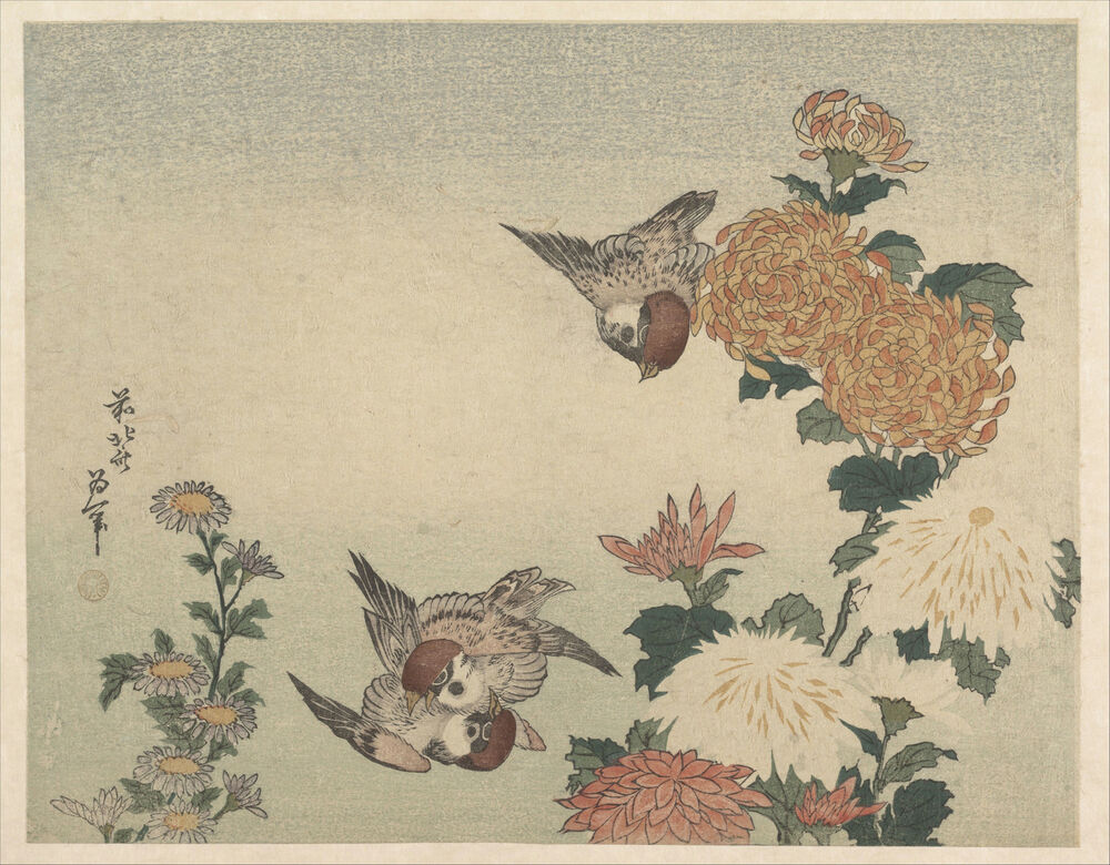 葛飾北斎画 菊に雀|Sparrows and Chrysanthemums