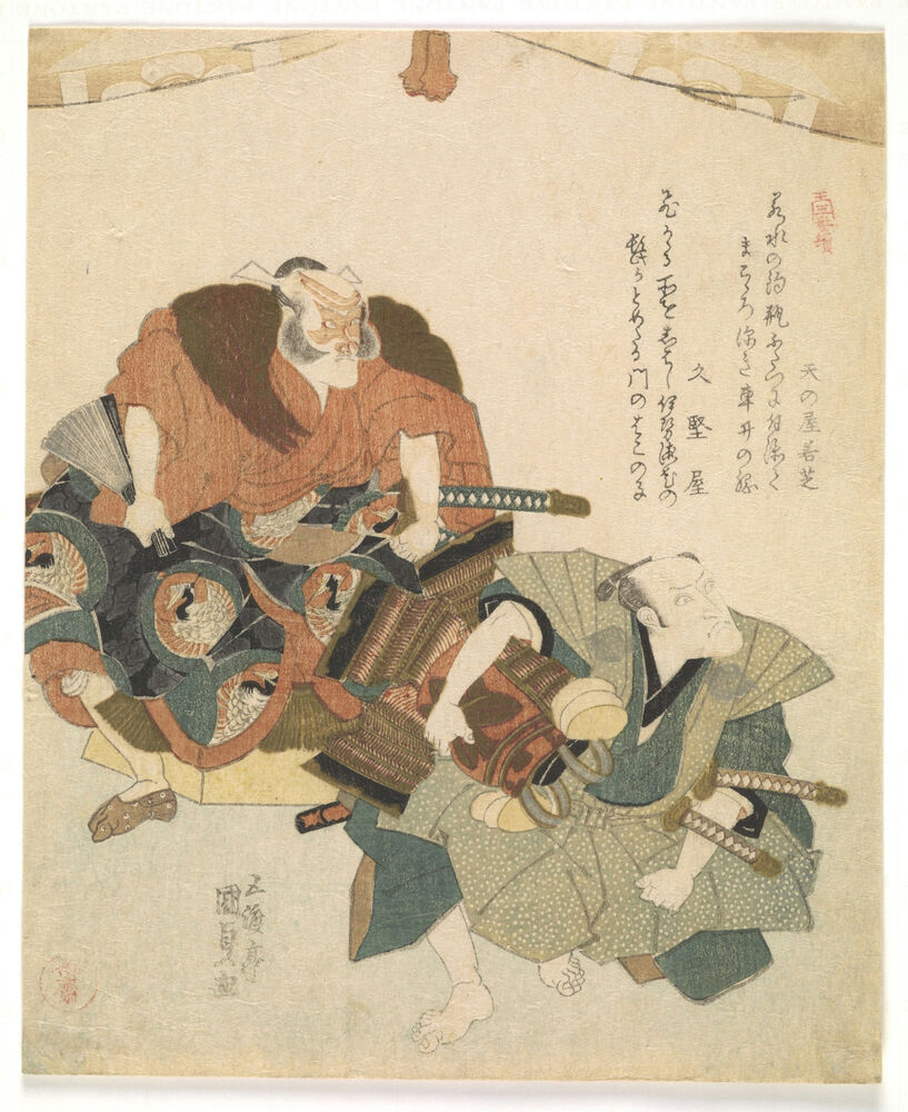 Surimono: Two Kabuki actors (one sheet of a kukuban surimono triptych)
