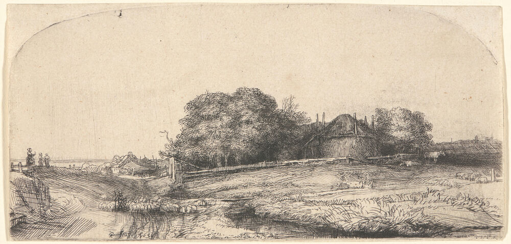 Landscape with a Hay Barn and a Flock of Sheep