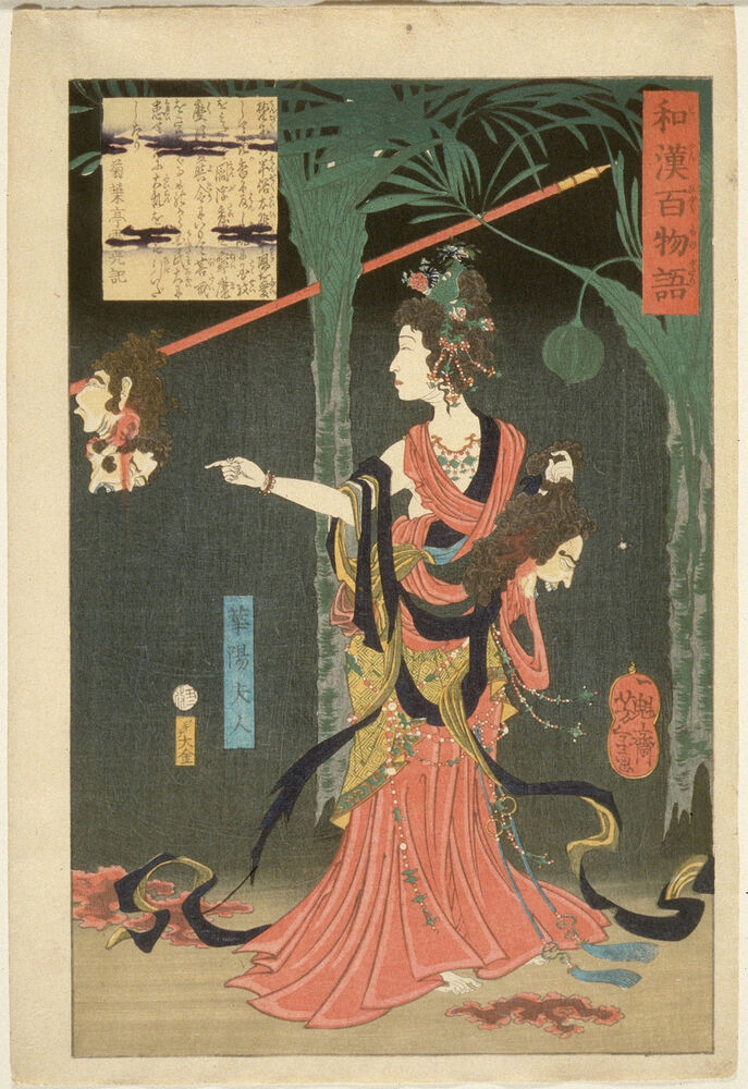 Lady Kayō, Consort of Prince Hanzoku of India, Holding a Severed Head