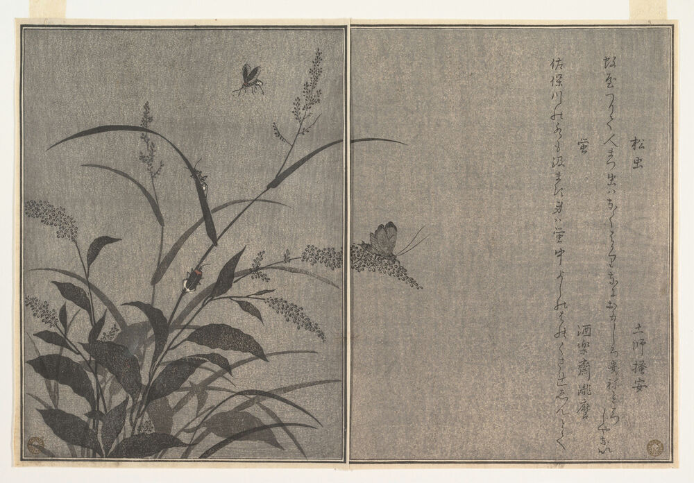 『画本虫撰』 「松虫」「虫蛍」|Tree cricket (Matsumushi); Firefly (Hotaru), from the Picture Book of Crawling Creatures (Ehon mushi erami)