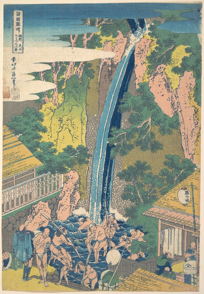 諸國瀧廻リ 相州大山ろうべんの瀧|Rōben Waterfall at Ōyama in Sagami Province (Sōshū Ōyama Rōben no taki), from the series A Tour of Waterfalls in Various Provinces (Shokoku taki meguri)