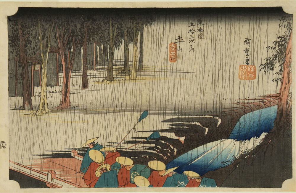 A Spring Shower, Tsuchiyama, from the series the Fifty-three Stations of the Tokaido (Hoeido edition)