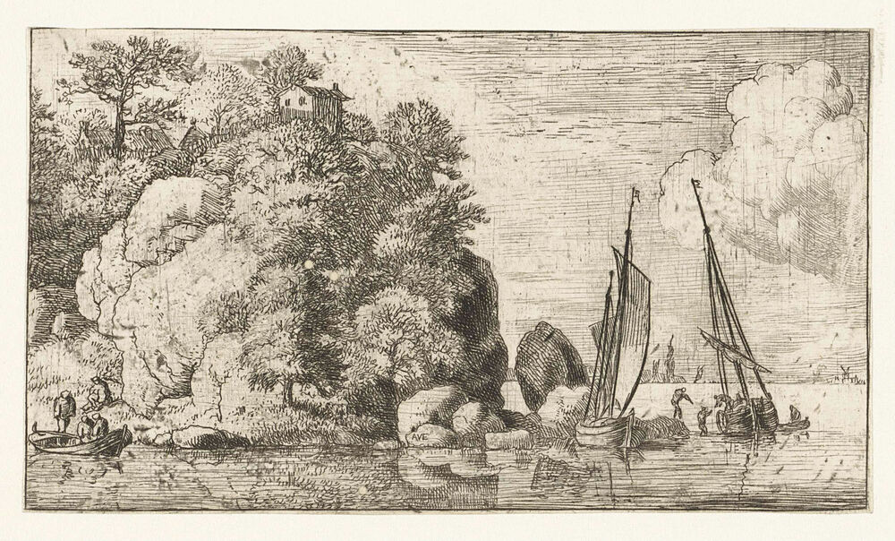Rivierlandschap met twee boten