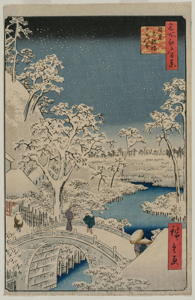 Picture of Twilight at the Drum Bridge in Meguro, from the series 100 Views of Famous Places in Edo