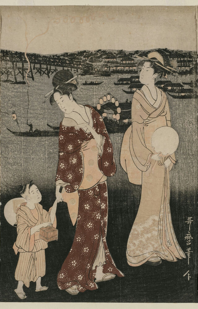 Women Enjoying the Evening Cool Near Ryogoku Bridge