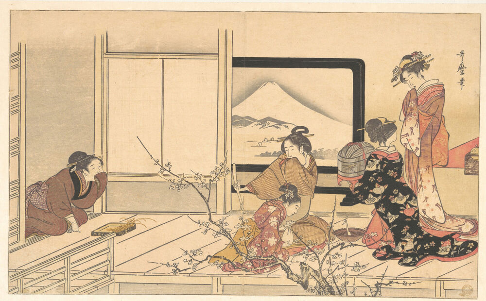 喜多川歌麿画 『男踏歌』 鶯の餌すり|“Preparing Food for the Warbler,” from the album Men’s Stamping Dance (Otoko dōka, uguisu no esa suri)
