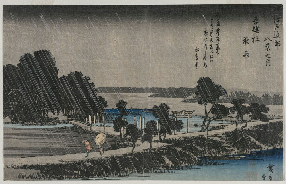 Night Rain at the Azuma Shrine (from the series Eight Views of the Environs of Edo)