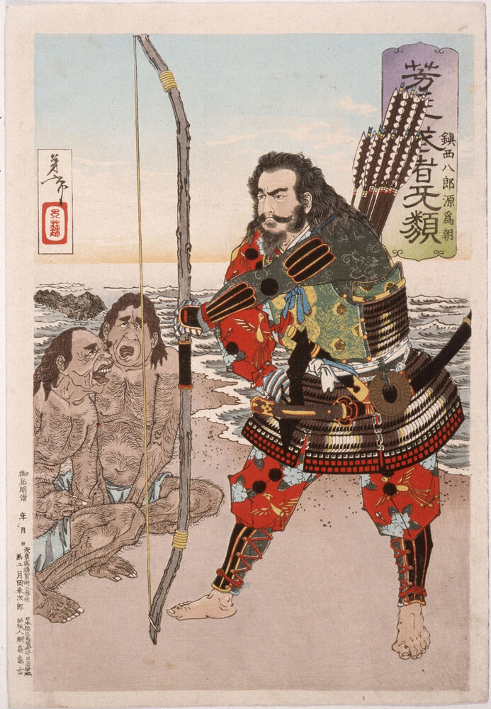Chinzei Hachirō Tametomo with Two Islanders on the Beach at Ashijima