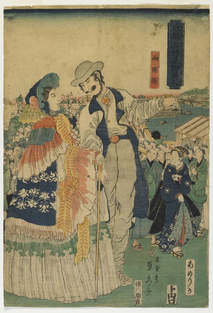Foreigners sightseeing at the famous spots in the Eastern Capitol: Ryogoku Bridge