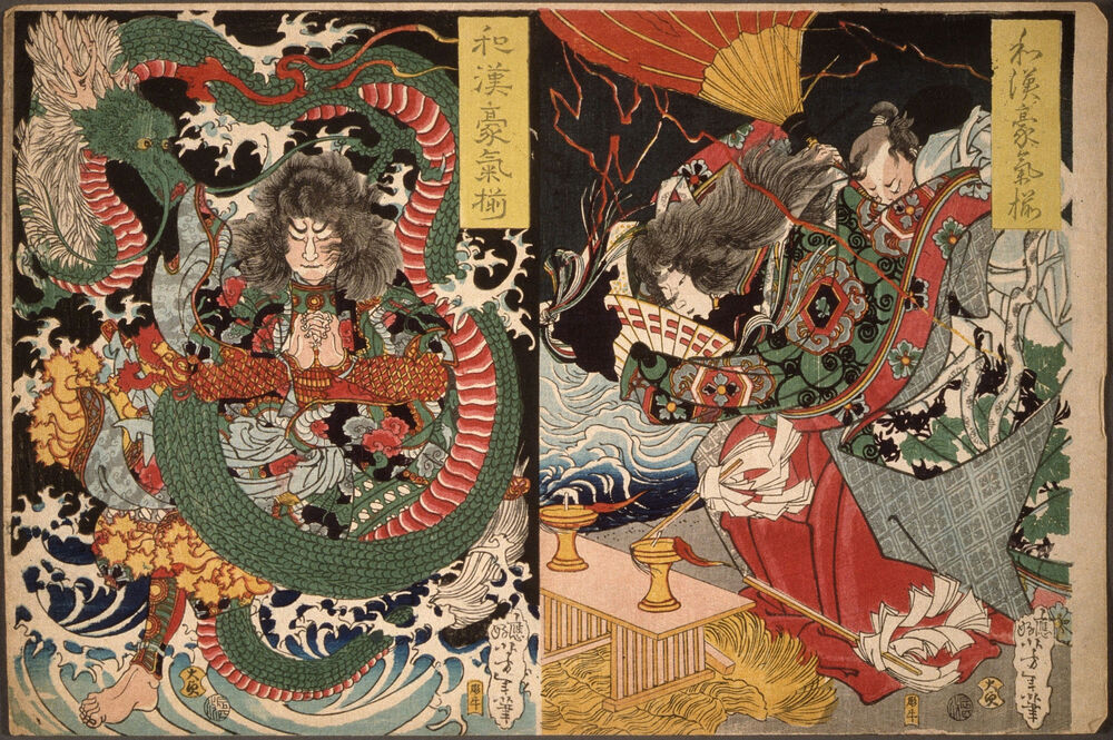 Tawaraya Tōda and a Dragon; Ono no Komachi Praying for Rain