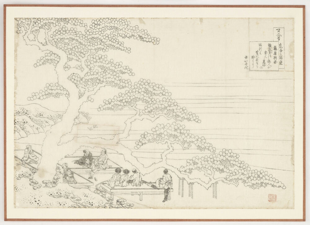 Preparatory drawing for a print in the series Hyakunin isshu uba ge etoki: Fujiwara no Okikaze