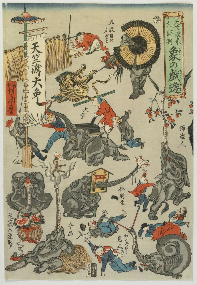 Famous Elephants Imported from India at Play (Tenjiku torai dayhyoban zo no giyu)