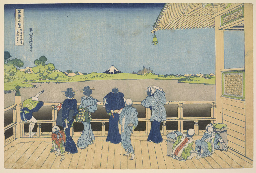 The Sazaido Hall of the Temple, Gohyakurakanji from the series Thirty-Six Views of Mount Fuji