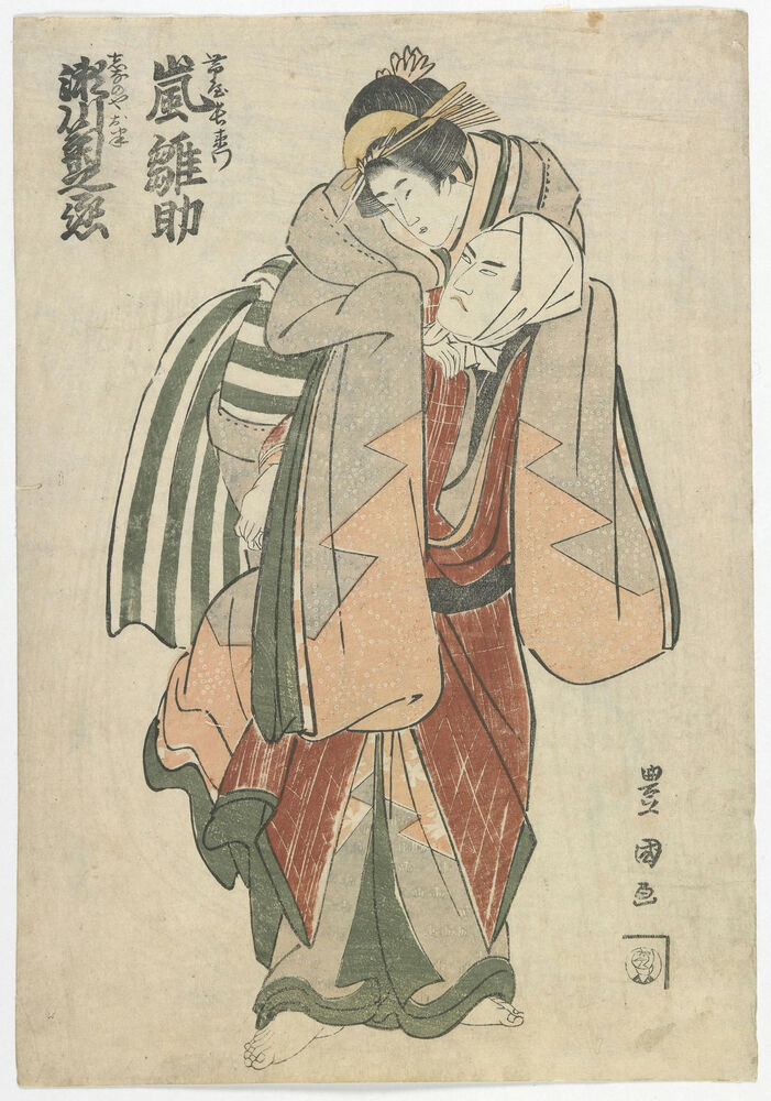 Actors Arashi Hinasuke as Obiya Choemon and Segora Kikunojo III as Shinanoya Ohan