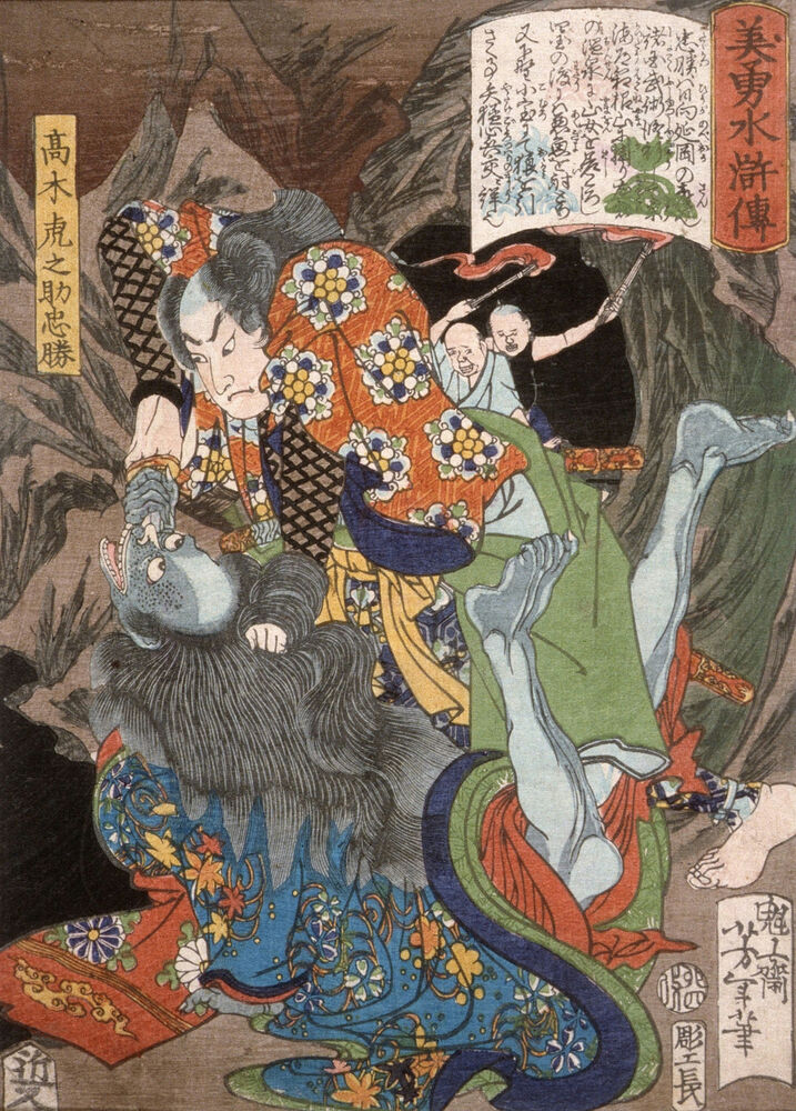Takagi Toranosuke Tadakatsu Slaying a Demon in a Cave
