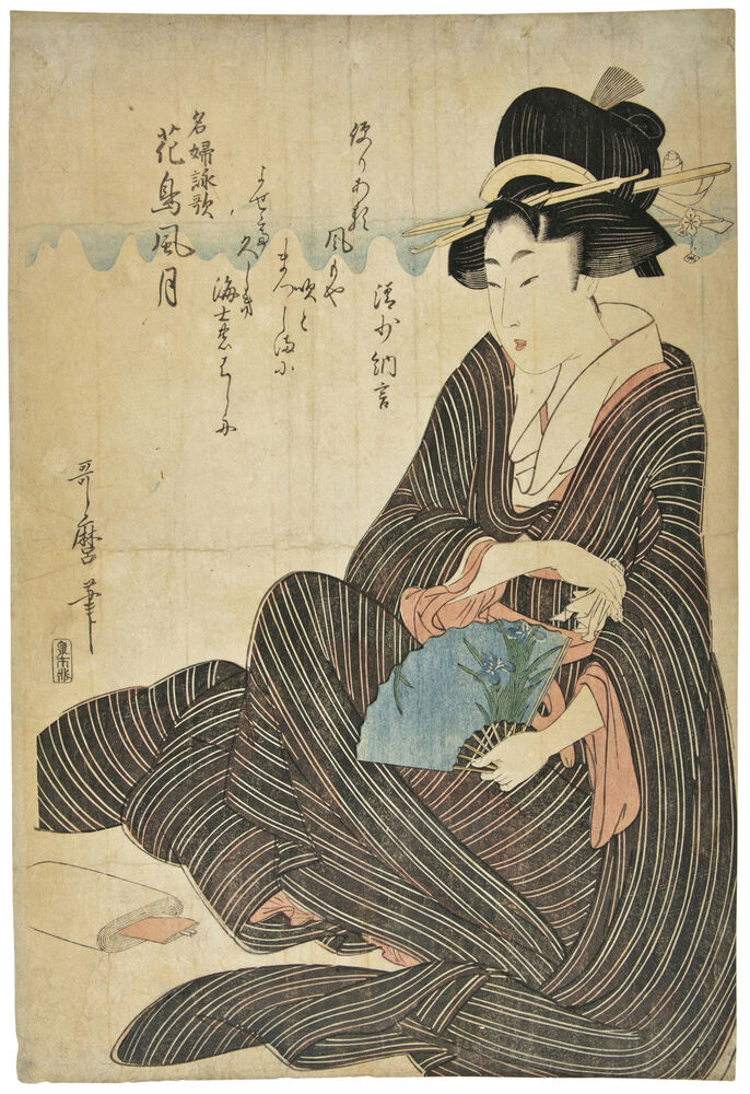 Courtesan or Kneeling Lady with Fan from the series Seasonal Poems Composed by Famous Women