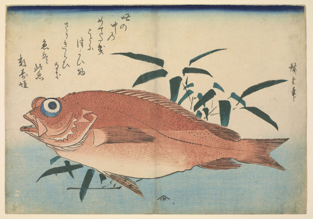 Red rockfish (Akodai) with Bamboograss, with inscription
