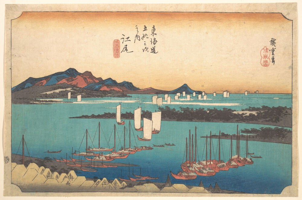 東海道五十三次之内 江尻 三保遠望|Panorama of Miwo Pine Wood from Ejiri