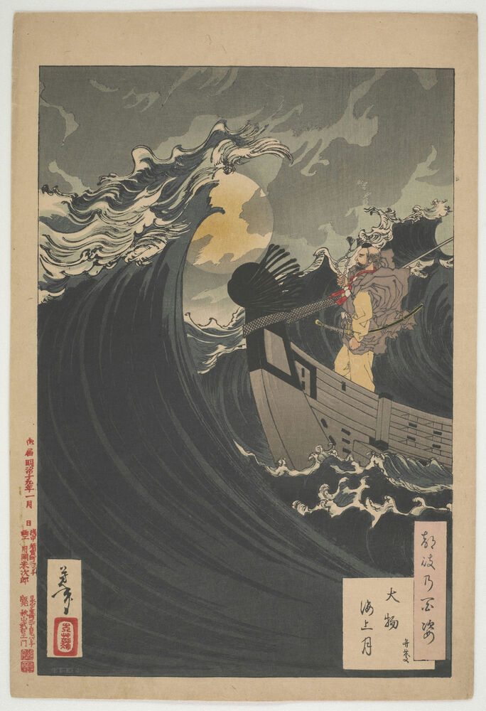 Moon above the sea at Daimotsu bay: Benkei, from the series One Hundred Aspects of the Moon