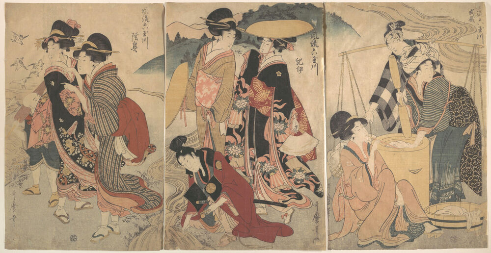 風流六玉川 武蔵 紀伊 陸奥|Women and a Man in the Country; Some pageant(?)