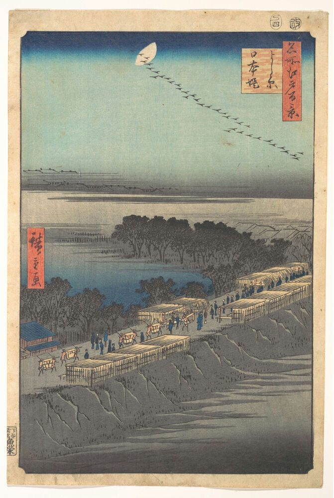 「名所江戸百景 よし原 日本堤」|“Nihon Embankment at Yoshiwara,” from the series One Hundred Famous Views of Edo (Meisho Edo hyakkei, Yoshiwara, Nihonzutsumi)