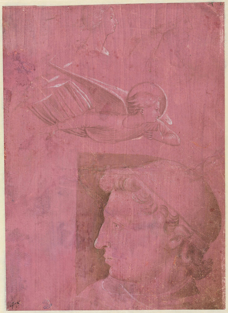 Head of a Man, Two Studies of a Woman's Profile, and a Study of An Angel (verso)