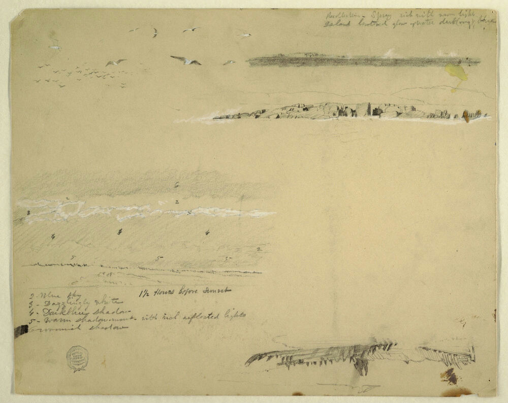 Studies of Gulls, Rocky Coast and Cloudy Sky, Great Manan, Canada