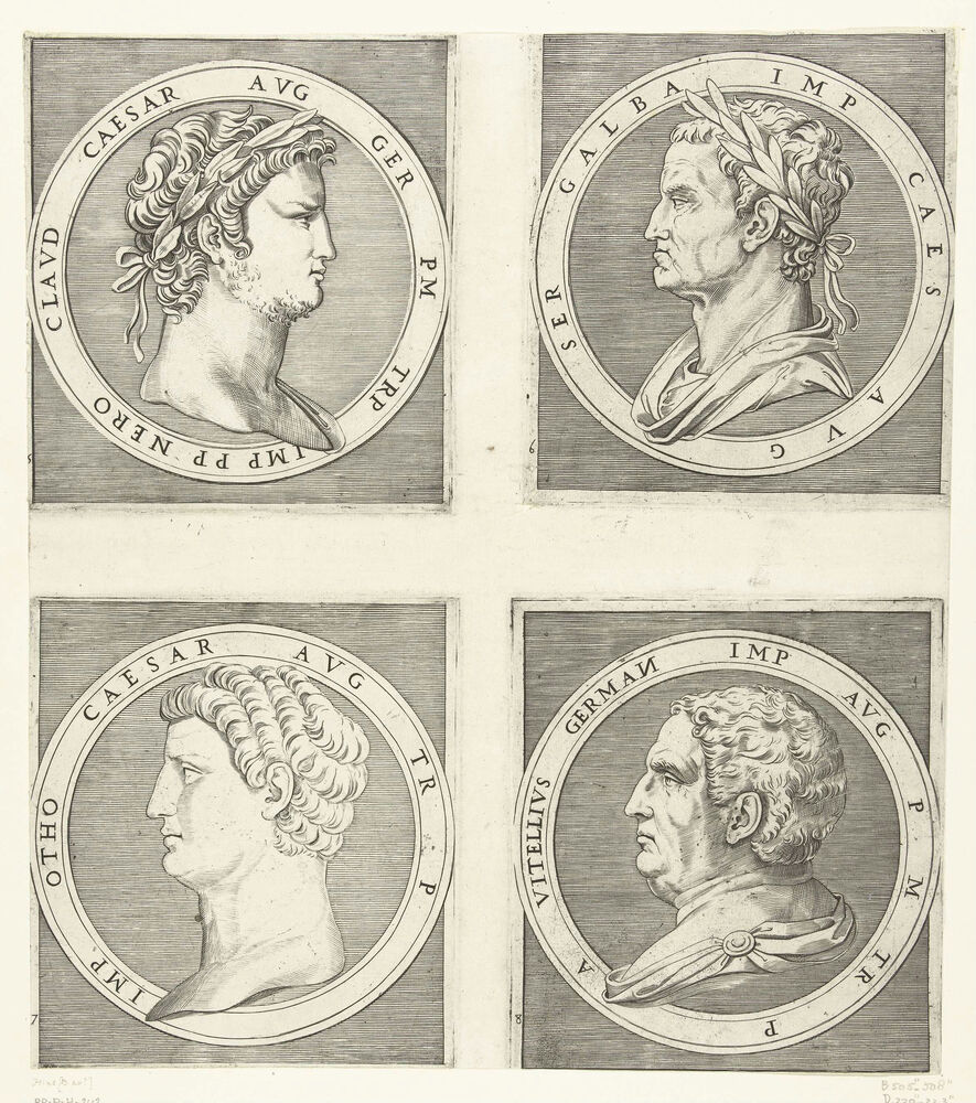Portretten van keizers Nero en Galba en Otto en Vitelius