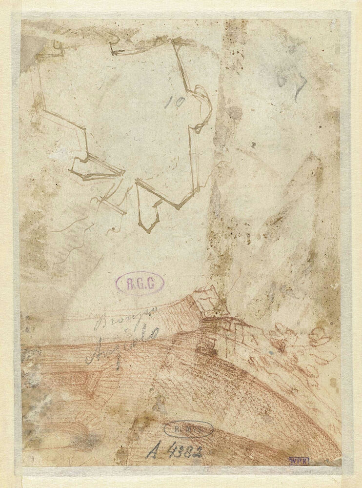 Schets van een overwelfde ruïne en een opmeting van een verdedigingswerk