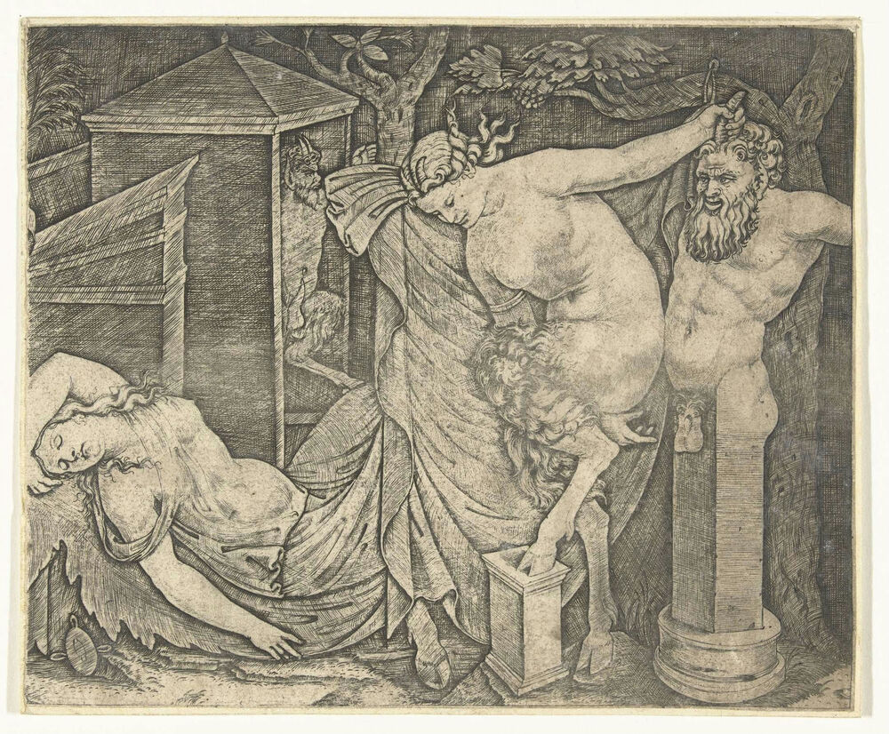 Fragment van bacchanaal met satervrouw en herme en slapende bacchante