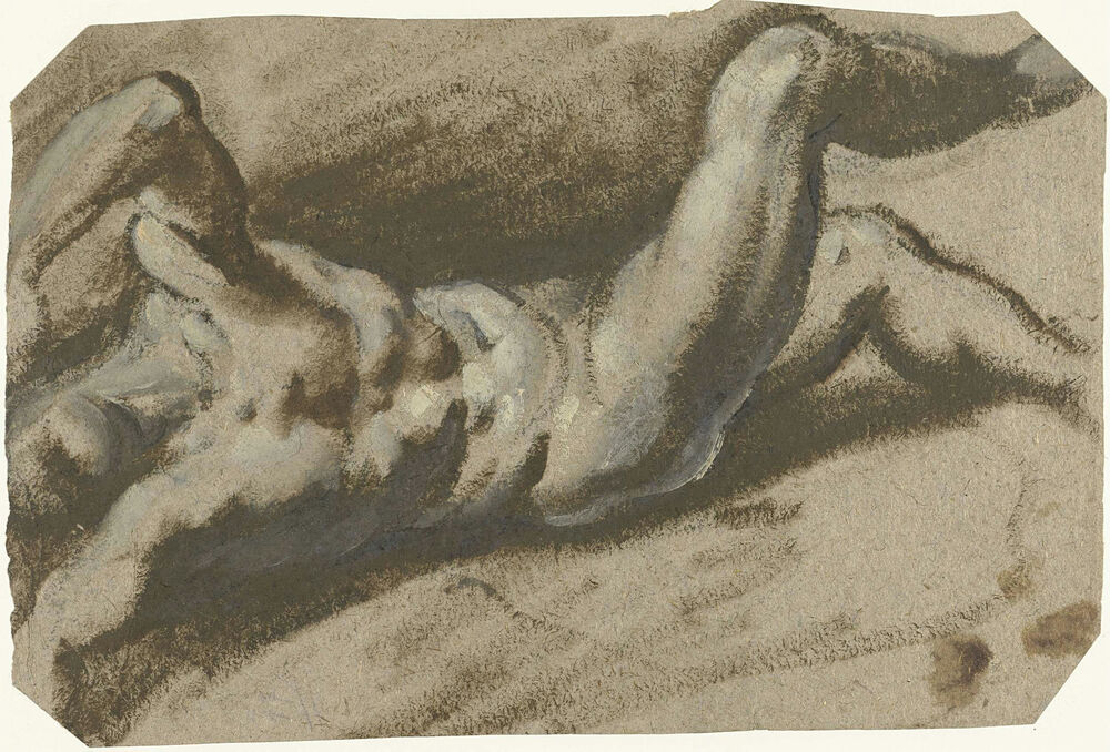 Achteroverliggende naakte jongeman