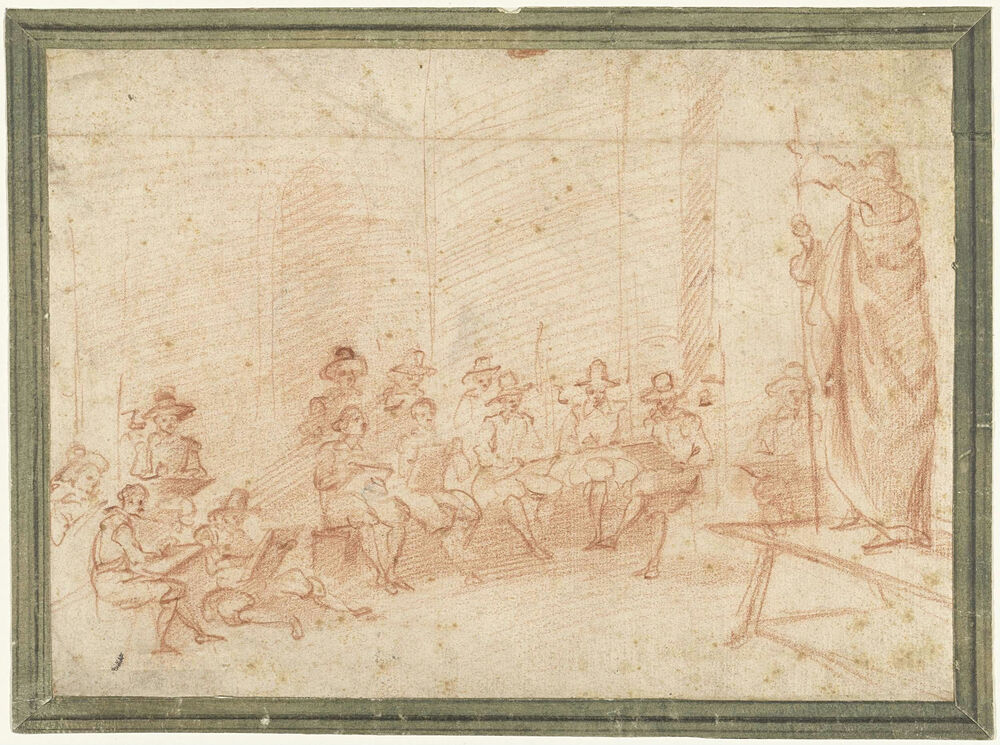 Tekenschool waar naar bekleed model wordt getekend