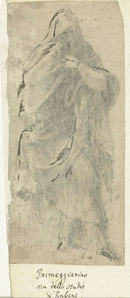 Gedrapeerde figuur, vrijwel frontaal gezien