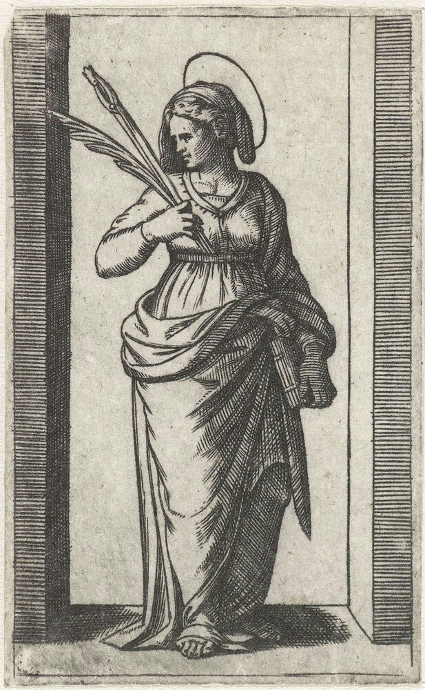 Heilige Apollonia met nijptang met tand