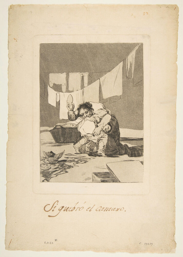 Plate 25 from 'Los Caprichos': If he broke the pot (Si quebró el cantaro.)